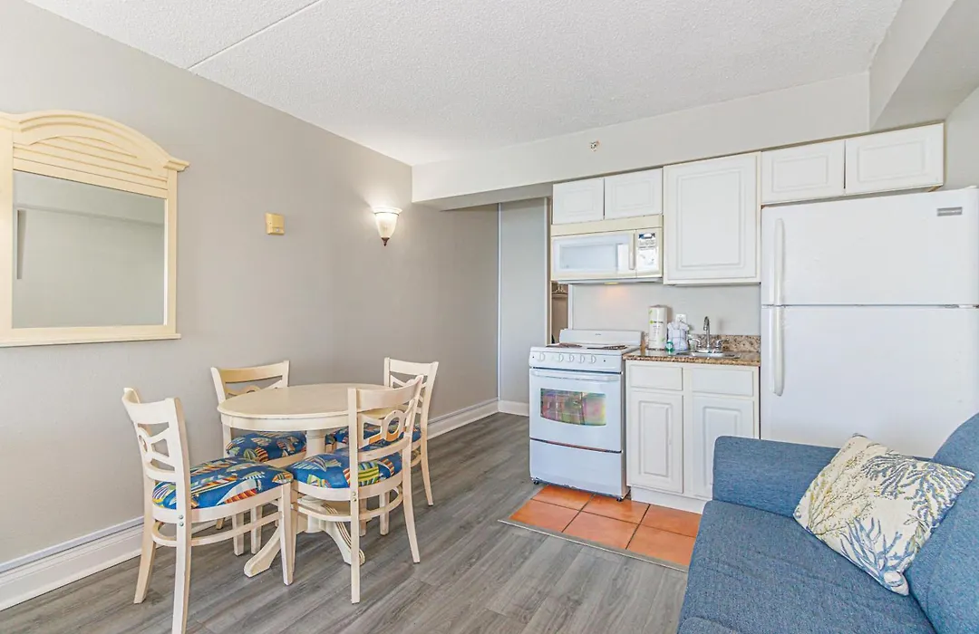 Spectacular Oceanfront Studio! Recently Renovated! Sea Mist 20902 villa includes a dining area with tea and coffee making equipment, a refrigerator, and kitchenware. The property is a stone's throw from brew pub The Palace Restaurant.